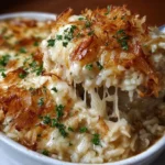 A rich and satisfying one-pan bake that combines creamy chicken, tender rice, and the flavors of French onion soup, making it the ultimate comfort food.