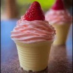 Delicious Strawberry Dole Whip served in a cup with a cherry on top